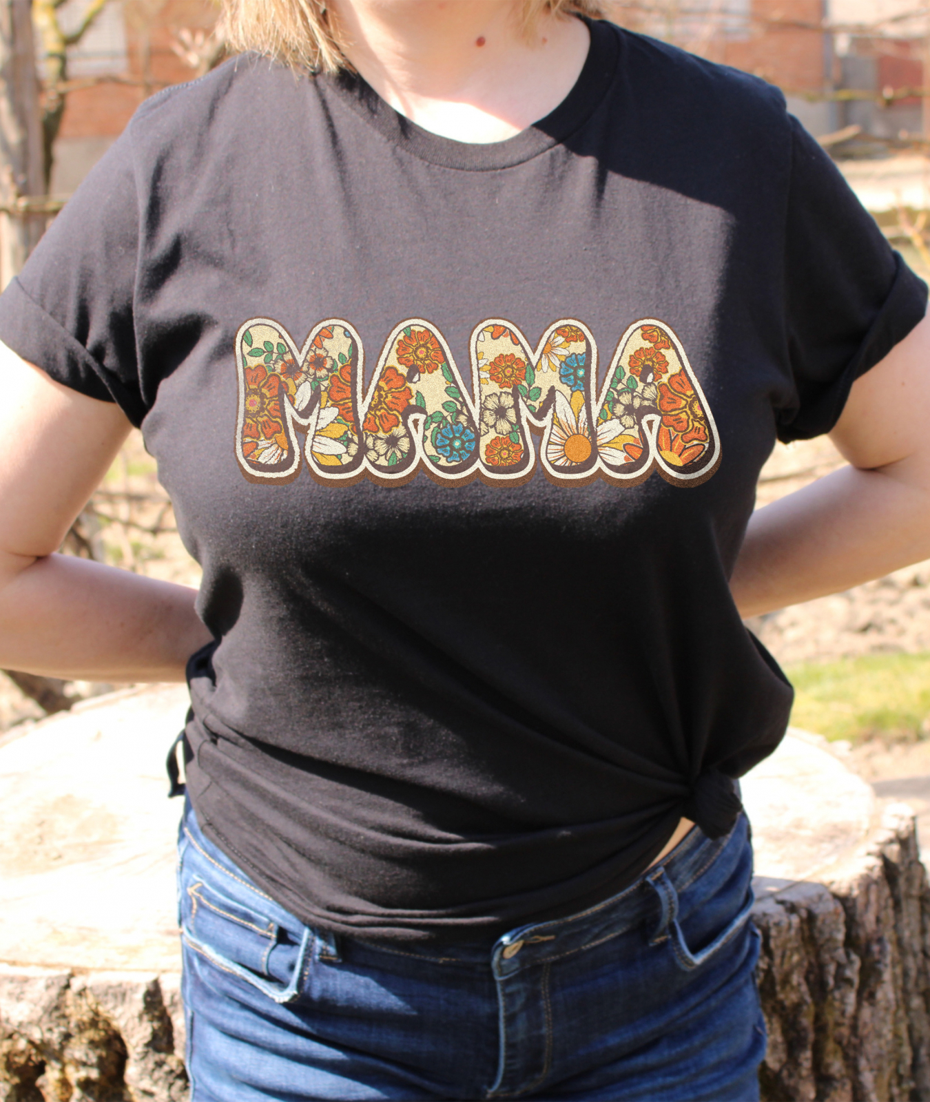 Acest tricou personalizat pentru sărbătorirea Ziua Mamei pe 1 martie și Ziua Femeii pe 8 martie reprezintă un cadou delicat și plin de afecțiune. Cu un design special creat pentru a celebra feminitatea și rolul esențial al mamelor, tricoul este ornamentat cu un pattern floral bogat și elegant, conferindu-i un aer romantic și retro.
