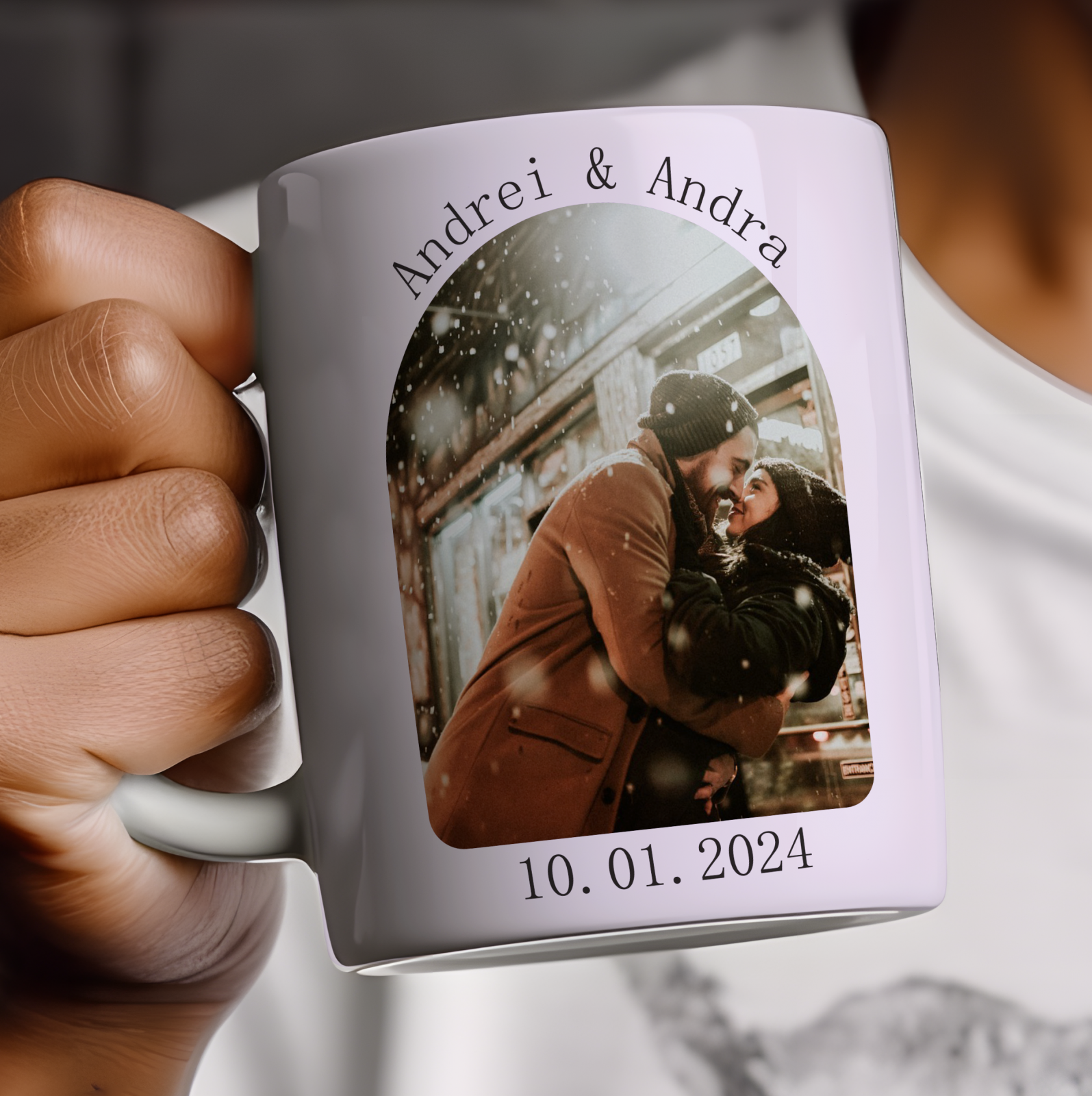 Setul personalizat de două căni pentru cupluri este o modalitate inedită de a celebra momentul special al întâlnirii. Fiecare cană este atent decorată cu o notă artistică, iar spațiul special pentru data întâlnirii oferă clientului posibilitatea de a adăuga manual acea amintire unică și de a încărca fotografia specială. Fiecare cană devine astfel o parte a povestei lor, transformând cafeaua de dimineață sau ceaiul de seară într-un ritual plin de emoție. Materialele durabile și designul elegant se împletesc pentru a oferi nu doar două căni, ci și o conexiune durabilă cu acea clipă magică. Un cadou perfect pentru a celebra dragostea într-un mod personal și inedit.